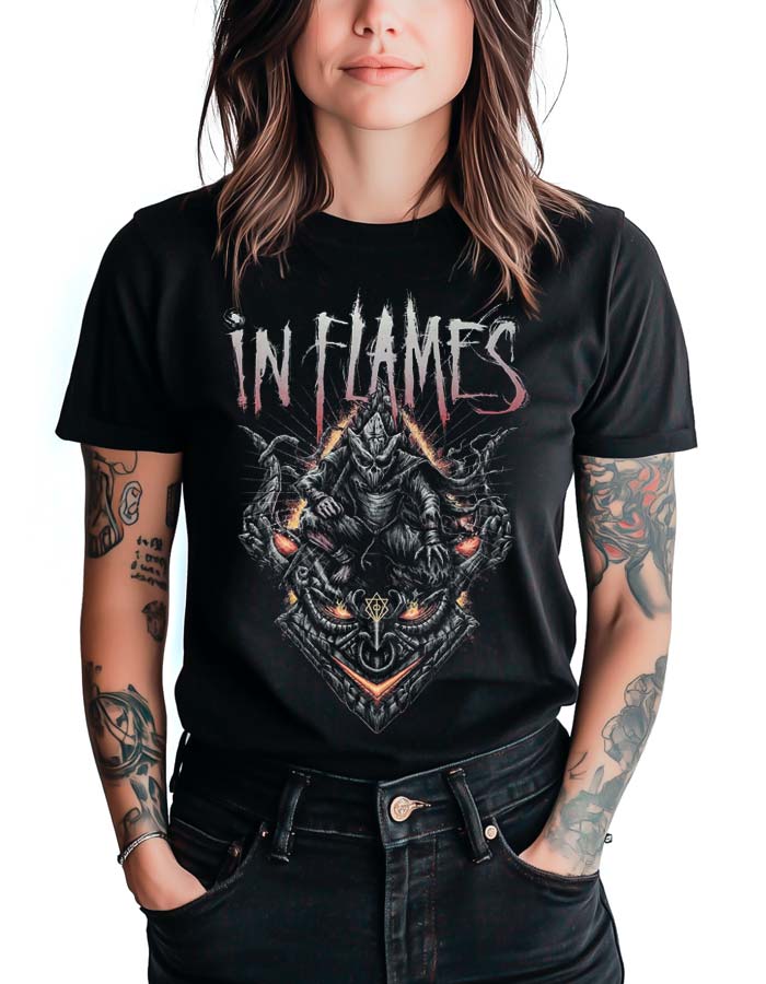 In Flames to szwedzki zespół metalowy, założony w 1990 roku w Göteborgu. Są uważani za jednych z pionierów gatunku melodic death metal, często zwanego „szwedzkim death metalem”, który łączy brutalność tradycyjnego death metalu z melodicznymi elementami gitarowymi. Skład zespołu na przestrzeni lat ulegał wielu zmianom, ale przez większość czasu jego kluczowe postacie to założyciel i gitarzysta Jesper Strömblad (do 2010 roku), wokalista Anders Fridén i gitarzysta Björn Gelotte. In Flames zyskał międzynarodową sławę dzięki takim albumom jak „The Jester Race” (1996), „Whoracle” (1997) i „Colony” (1999), które pomogły zdefiniować brzmienie melodic death metalu. In Flames jest znany z intensywnych występów na żywo i dużej liczby koncertów na całym świecie, budując silne i oddane grono fanów. Ich wkład w rozwój melodic death metalu i wpływ na szerszą scenę metalową jest niezaprzeczalny, a zespół pozostaje jednym z najbardziej szanowanych i wpływowych wykonawców w swoim gatunku.