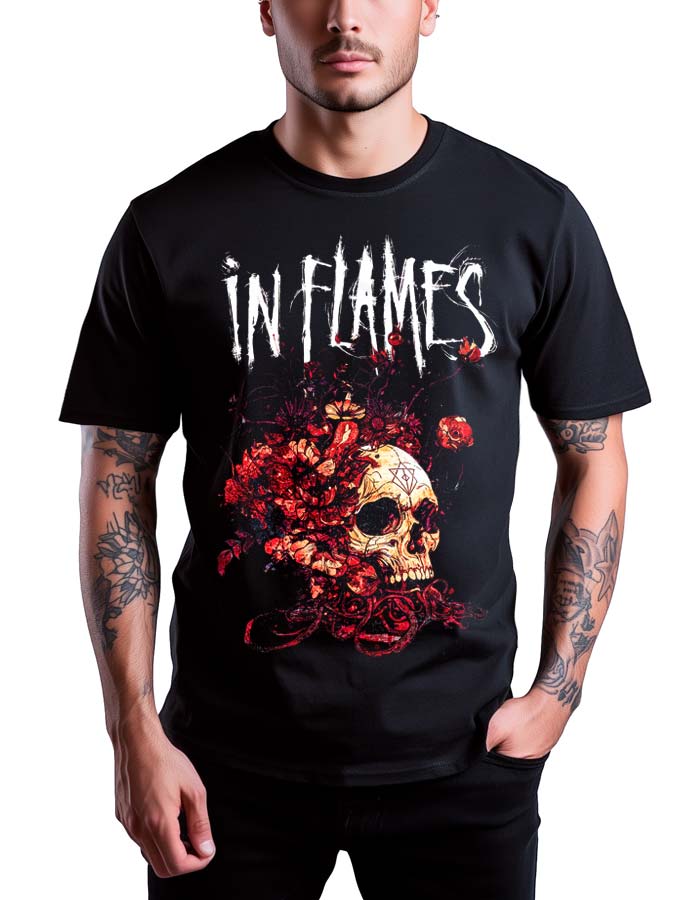 In Flames to szwedzki zespół metalowy, założony w 1990 roku w Göteborgu. Są uważani za jednych z pionierów gatunku melodic death metal, często zwanego „szwedzkim death metalem”, który łączy brutalność tradycyjnego death metalu z melodicznymi elementami gitarowymi. Skład zespołu na przestrzeni lat ulegał wielu zmianom, ale przez większość czasu jego kluczowe postacie to założyciel i gitarzysta Jesper Strömblad (do 2010 roku), wokalista Anders Fridén i gitarzysta Björn Gelotte. In Flames zyskał międzynarodową sławę dzięki takim albumom jak „The Jester Race” (1996), „Whoracle” (1997) i „Colony” (1999), które pomogły zdefiniować brzmienie melodic death metalu. In Flames jest znany z intensywnych występów na żywo i dużej liczby koncertów na całym świecie, budując silne i oddane grono fanów. Ich wkład w rozwój melodic death metalu i wpływ na szerszą scenę metalową jest niezaprzeczalny, a zespół pozostaje jednym z najbardziej szanowanych i wpływowych wykonawców w swoim gatunku.