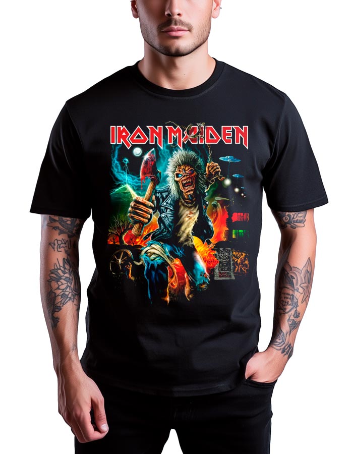 Iron Maiden to brytyjski zespół heavy metalowy założony w 1975 roku w Londynie. Są uważani za jednych z pionierów gatunku New Wave of British Heavy Metal, który zrewolucjonizował scenę rockową na początku lat 80. Ich muzyka charakteryzuje się złożonymi kompozycjami, szybkimi gitarami, a także epickimi tekstami opowiadającymi o historii, mitologii i literaturze. Zespół zdobył światową sławę dzięki albumom takim jak „The Number of the Beast”, „Powerslave” i „Somewhere in Time”. Charakterystycznym elementem Iron Maiden jest ich maskotka, Eddie, pojawiająca się na większości okładek albumów i koncertach. Pomimo zmian w składzie, zespół pozostał jednym z najbardziej wpływowych i szanowanych zespołów metalowych na świecie, ciesząc się lojalną bazą fanów i kontynuując trasy koncertowe na dużą skalę.